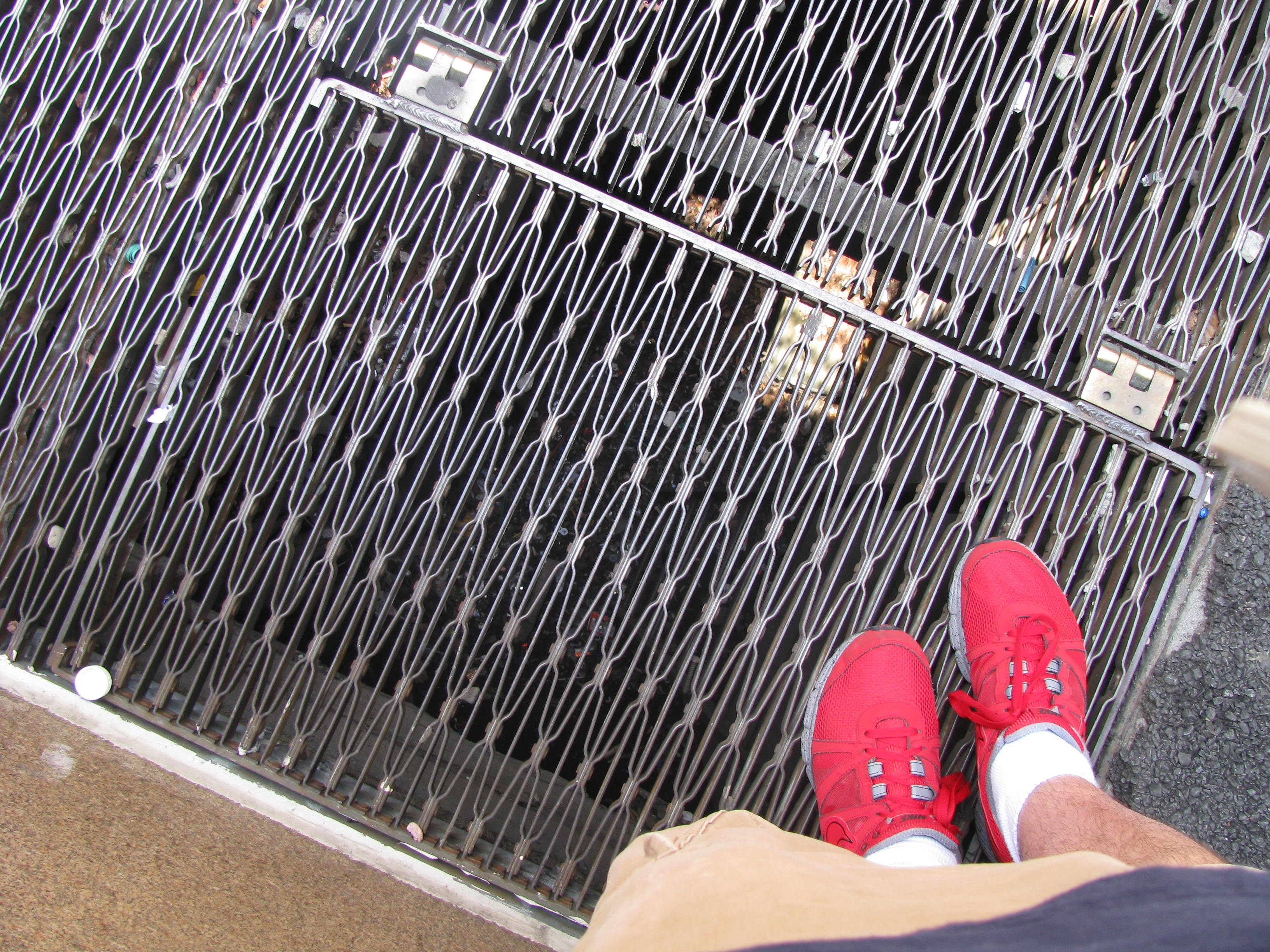 I took this picture over the summer when I went to New York City.  I don’t know if you can see it, but there is a quarter down in the drainage tunnel under that grate.  I would say that the bottom of the tunnel was somewhere between 6-8 down.  I don’t know why I had to take a picture of it, but I just had to.